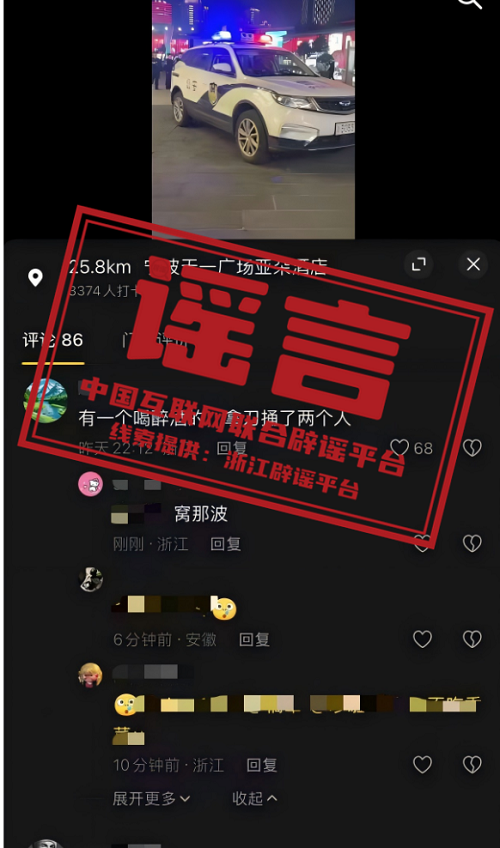 辟谣:“宁波天一广场有醉酒人员持刀捅两人”系谣言